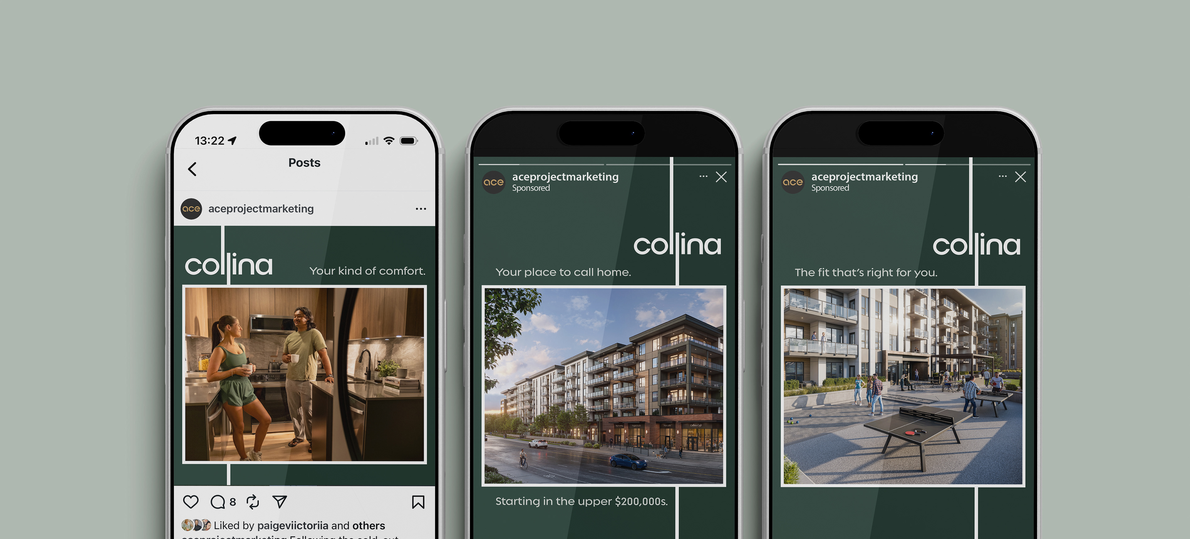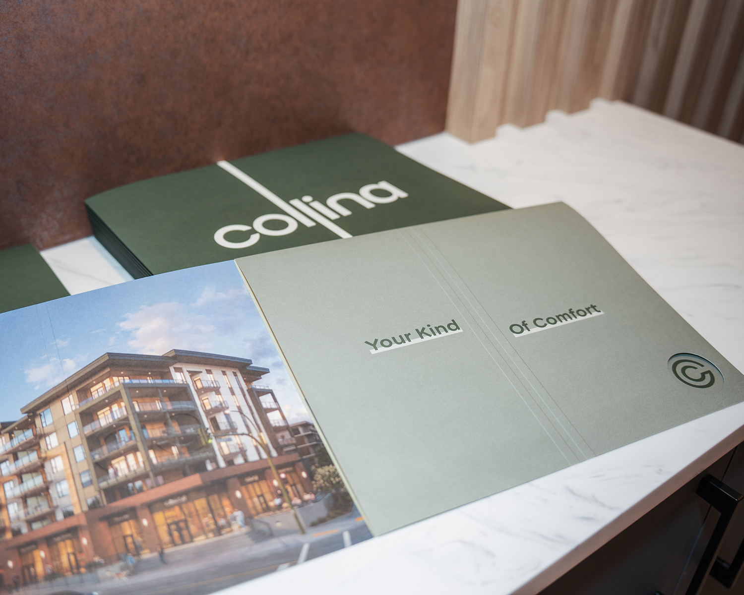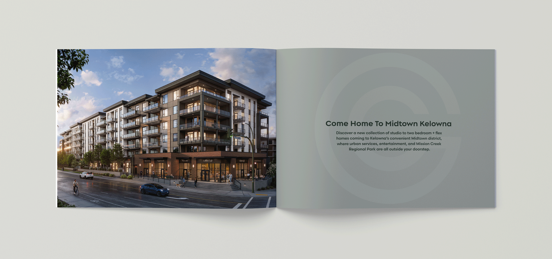 Collina is a six storey, 177 home community in Kelowna’s Midtown district designed for first time buyers and young professionals who want practical amenities, welcoming design and easy access to recreation. The brand needed to feel familiar, friendly and grounded in everyday living.